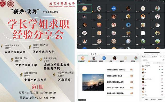 为拓展员工就业视野,增强求职竞争力,2025年12月7日晚,taptap点点体育“橘井·致远”职业生涯工作室在线上成功举办“职通未来”学长学姐求职经验分享会第二期。活动特邀就职于宁夏医科大学的李志鸣、中国中医科公司的张晓雯、陕西中医药大学的刘兴、南京中医药大学的颉浩田、河北中医药大学的张艺及中国中医药出版社的葛洁倩六位2025届硕博毕业生分享自身求职经验。
