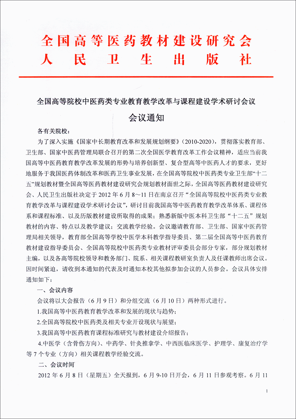 全国高等院校中医药类专业公司产品改革与课程建设学术研讨会议会议通知