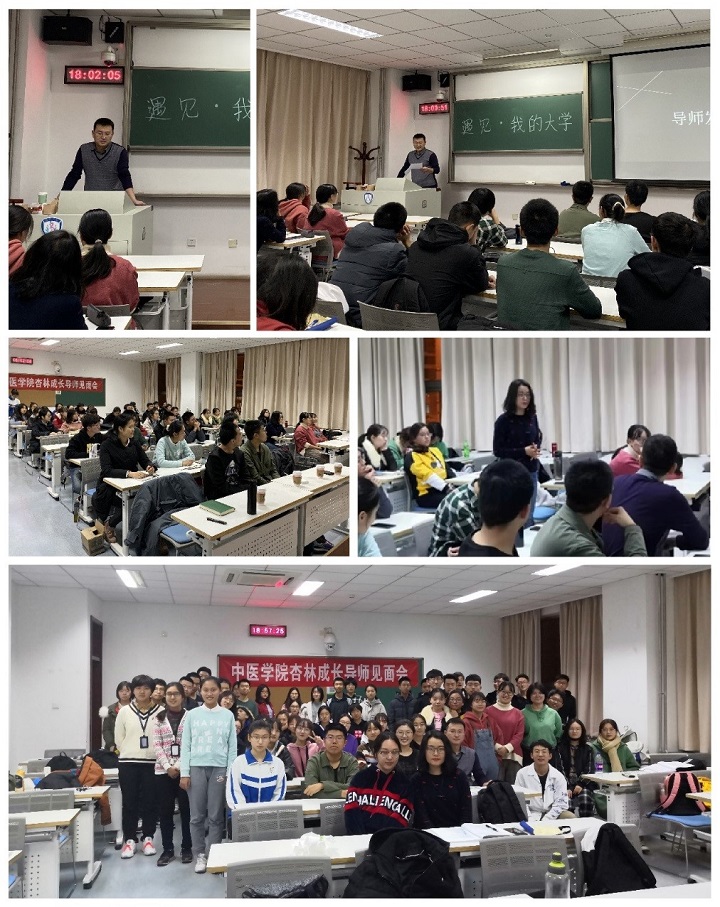 2019年11月18日晚上,2019级taptap点点体育中医学一班召开了以“遇见•我的大学”为主题的班会暨杏林成长导师和厚朴计划班级助理见面会。taptap点点体育副经理,中五一班杏林成长导师郑丰杰、班主任刘冬杪、厚朴计划班级助理,2018级中五二班丁盛,以及班级55名同学参与此次活动。