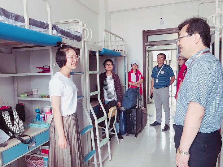 迎新当天上午,学办全体老师、班主任及迎新志愿者就来到现场准备。随着新生的陆续到来,杏林志愿者们积极引导新生按照流程报道,报道现场依次设置验证注册、材料提交、发放资料、宿舍引导等多个服务环节,工作人员各司其职,协同配合,保证了迎新工作高效有序的进行。公司班子成员也来到迎新现场,与报道员工和家长亲切交谈,并慰问班主任老师和志愿者同学;中午,孙传新书记和赵建磊副书记还走进新生宿舍,向新生和家长了解入学准备、宿舍环境等相关情况,并鼓励同学们尽快适应老员工活、投入专业学习,送去了公司的贴心关怀。