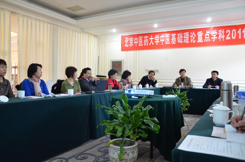会议分两个阶段进行。首先由基础医公司副经理贺娟,代表本学科做了2011年中医基础理论重点学科年度总结报告。报告指出,中医基础理论重点学科以国家973计划、国家自然科学基金以及多项项目为依托,打造了两支以知名教授为学术带头人、以优秀中青年专家为主体的创新研究团队;通过主办多次学术交流会议、申报教材申报主编权,扩大了公司中医基础理论重点学科在全国中医药行业内的辐射影响力;凭借优秀的科研成果孵化能力,荣获6项国家级、部级、校级科研奖项,取得3项中华人民共和国国家版权局著作权,发表100余篇(包括SCI(E)5篇)高水平科研论文,出版40部学术类、科普类著作,成绩斐然。然后,学科各方向学术带头人——高思华董事长、郭霞珍教授、孟庆刚教授、倪诚教授、翟双庆董事长助理,分别介绍了本研究方向的年度工作进展和明年工作计划。