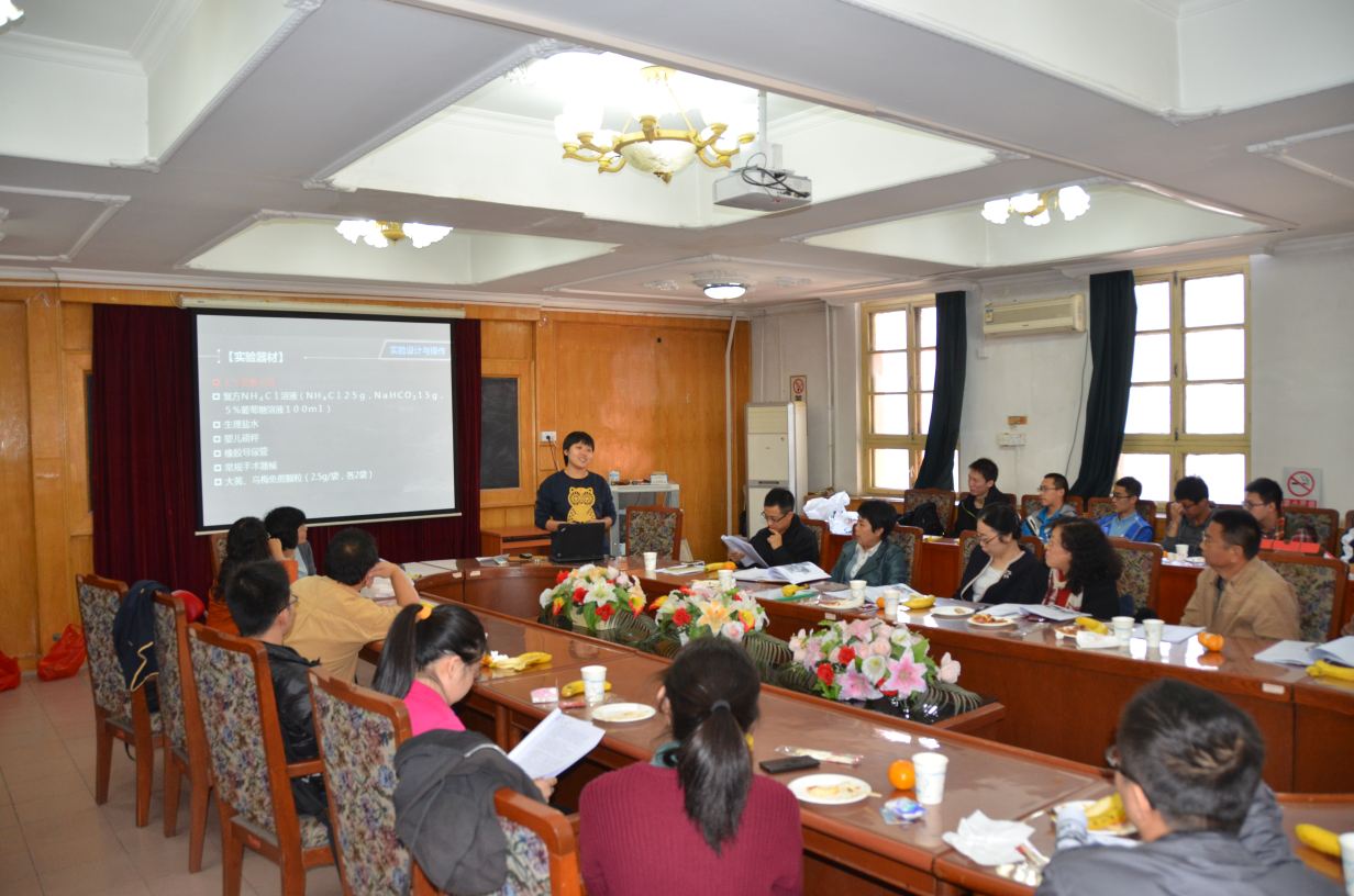 郭健老师首先汇报了此项目中生理学实验教学模式改革的背景、目的意义、组织过程和主要内容。随后本次实验教学改革的参与主体2012岐黄国医1班的同学们汇报了他们进行自主创新实验的设计思路、实验过程和结果,其实验方案包括方剂不