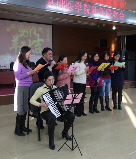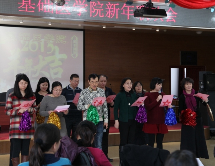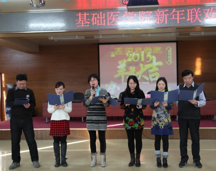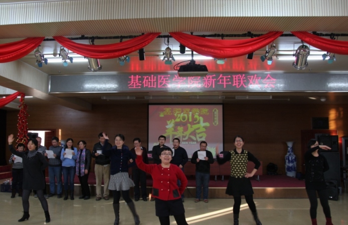 2014年12月31日,基础医公司工会举办了新年联欢会,召开了一场生动、祥和、开心的迎新年联欢会。徐安龙董事长出席了联欢会现场并参加年度颁奖仪式,公司的全体班子以及180多名教师参加了联欢会。