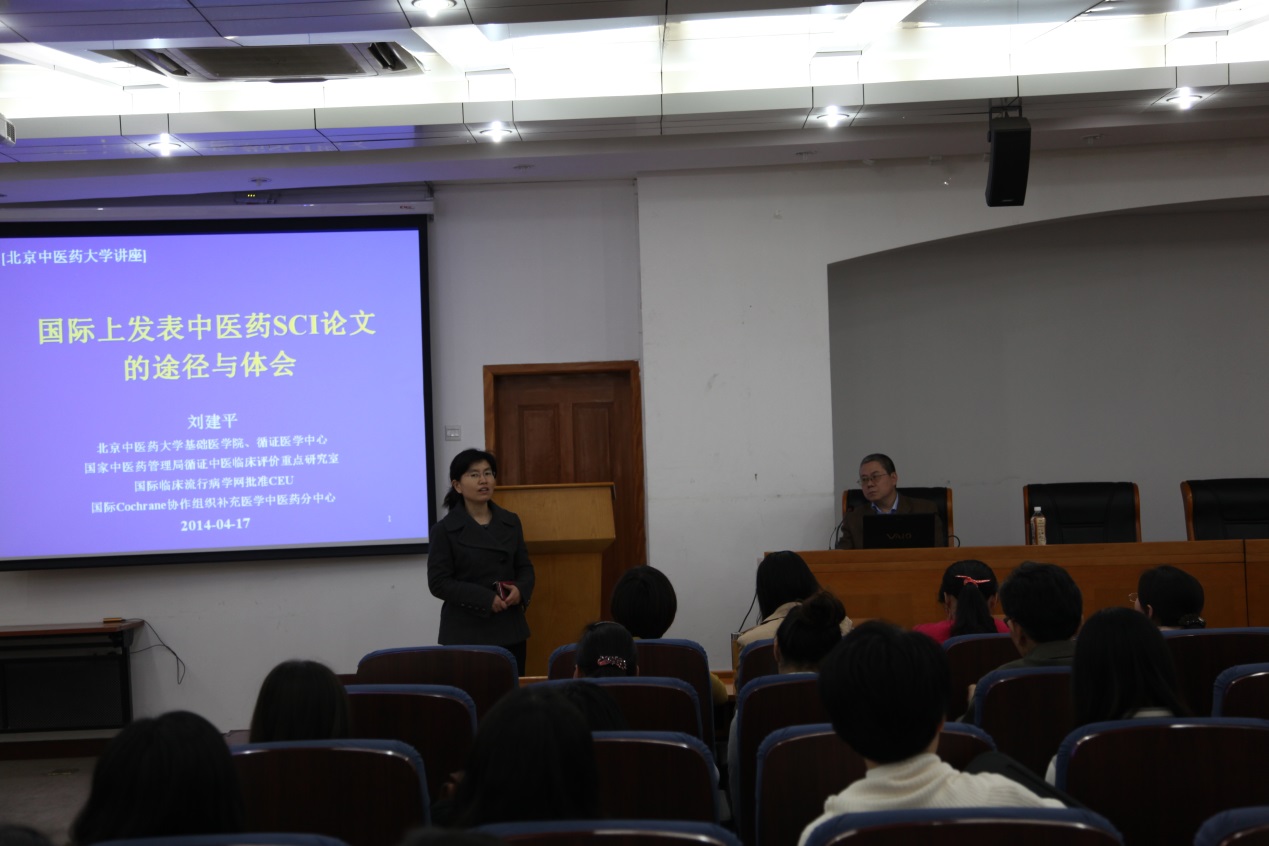 4月17日下午,基础医公司在中医药博物馆一楼报告厅举办SCI论文写作培训系列讲座之三——“国际上发表中医药SCI论文的途径与体会”。讲座邀请了刘建平教授主讲,基础医公司赵琰副经理主持并做了介绍。