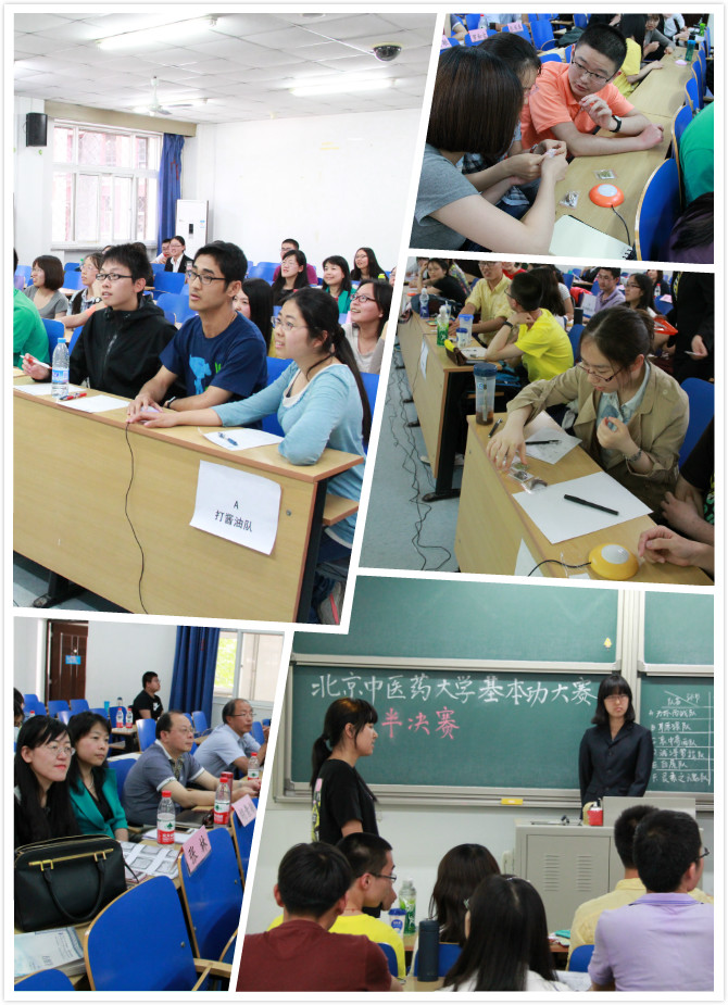 上半场竞赛为中医学基本理论与知识竞赛,下半场则是四大经典知识竞赛,共有来自基础医公司、针灸推拿公司、第一临床医公司、第二临床医公司的24支队伍参赛,每队三人。大赛有“小试牛刀”、“团结就是力量”、“中医猜词秀”、“眼疾手快”、“智勇大比拼”共五个环节的激烈比拼。同时设“有奖竞答”环节进行现场观众互动,比赛别开生面,现场气氛热烈。各位评委老师对现场组织及选手的表现给予了高度的评价,指出经典知识是中医学习的核心主干,为临床学习奠定基础,基本功大赛很好的展现了北中医学子的风采,值得延续。同时也指出了比赛中存在的不足,对答题的技巧进行了指点。最后,对晋级的队伍表示祝贺,希望大家在决赛中有更精彩的表现。