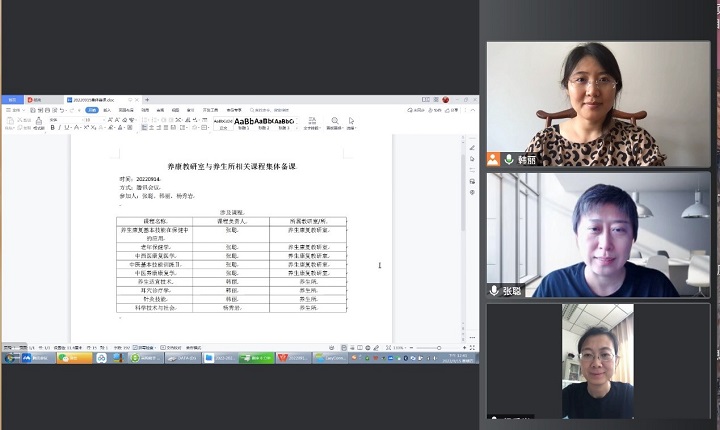 2022年9月15日星期四上午taptap点点体育养生康复教研室养生组、营养组、康复组的5位老师廖艳、张聪、张玉苹、张煜、张清怡和taptap点点体育养生所的韩丽老师和杨秀岩老师一起进行了集体备课,其目的为避免课程内容的交叉,了解相关课程的授课重点和特点,增加员工对于教学内容的新鲜度。
